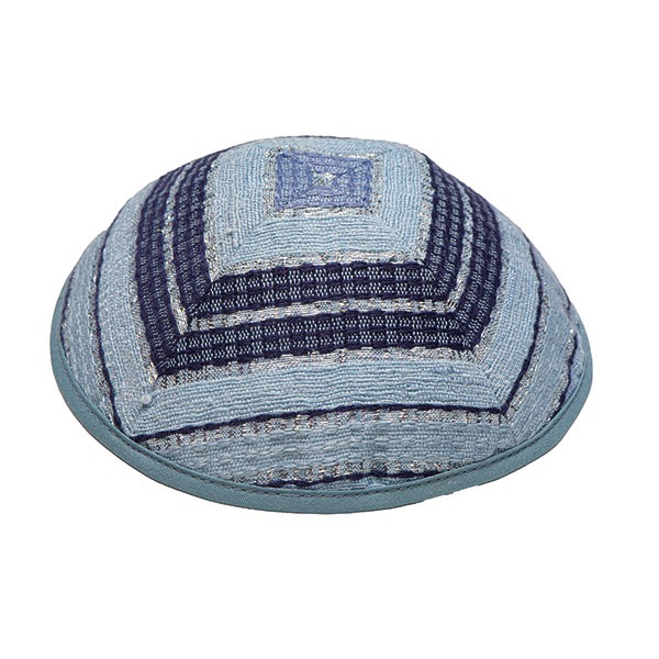 טלית - אריגת יד + עטרה עם ברכה - 105 ס"מ - כחול - רקע תכלת