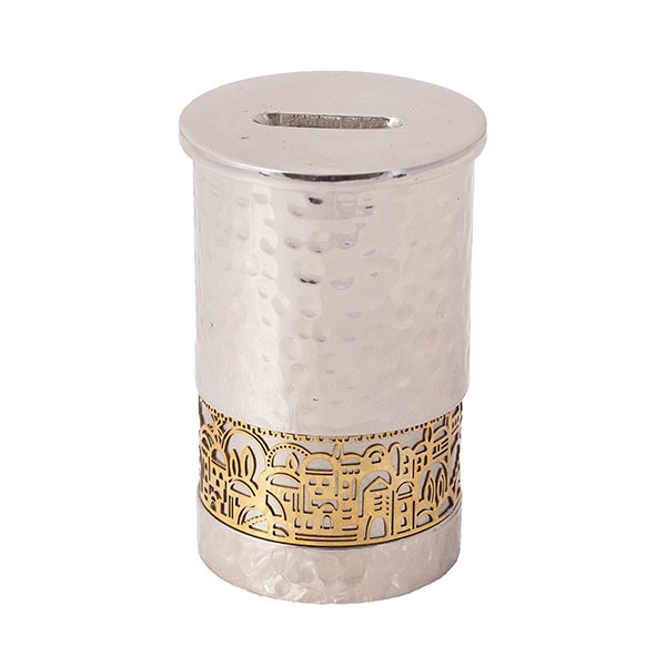 קופת צדקה + עיטור ירושלים - עבודת פטיש + נחושת