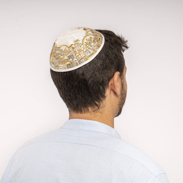 כיפה רקמה - ירושלים מלא - כסף + זהב