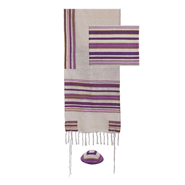 טלית - אריגת יד + עטרה עם ברכה - 52 ס"מ - סגול