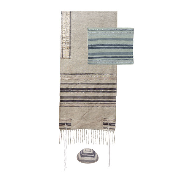 טלית - אריגת יד + עטרה עם ברכה - 52 ס"מ - אפור, רקע אפור