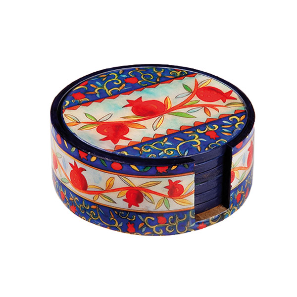 מוצר זה מעוצב ומיוצר על ידי אומן היודאיקה הירושלמי יאיר עמנואל. המגש עשוי מבמבוק ופולימר. על המגש מודפסים רימונים בצורות ובצבעים שונים, הרימון במסורת היהודית הינו סמל של ברכה ושפע.
