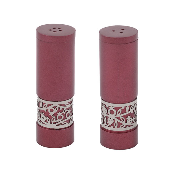 סט המלח והפלפל מעוצב על ידי האמן הירושלמי יאיר עמנואל. המלח פלפל עשויים מניקל, עם מכות פטיש בעבודת יד. הטבעות הורודות עשויות ממתכת צבועה בצבעי אנודייז. |