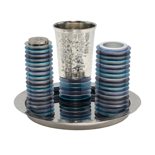 סט הבדלה - מגזרת מתכת ירושלים - כחול (HAG-5)
