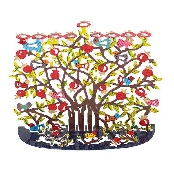 חנוכיה - חיתוך לייזר מצוירת - רימונים + ציפורים (HML-1)