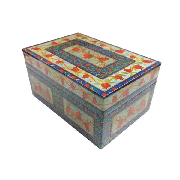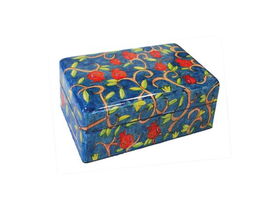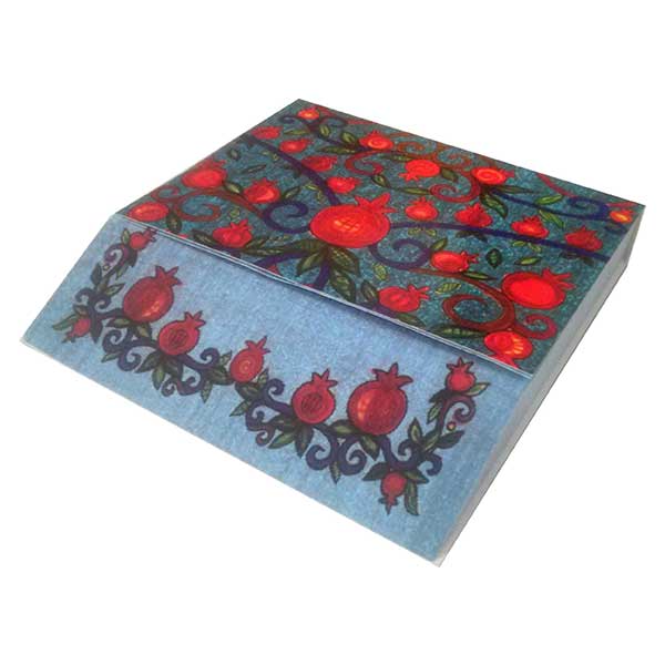 מוצר זה מעוצב ומיוצר על ידי אומן היודאיקה הירושלמי יאיר עמנואל.הקערה עשויה מבמבוק ופולימר.על הקערה מודפסים רימונים בצורות ובצבעים שונים,הרימון במסורת היהודית הינו סמל של ברכה ושפע.