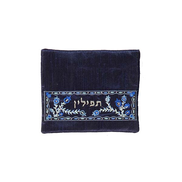 תיק תפילין - רקמה - רימונים - כחול (FA-5)