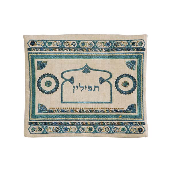תיק תפילין - אמצע רקום - פשתן (FMD-6)